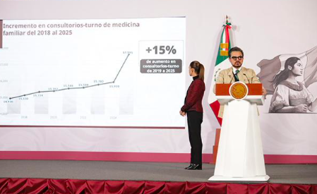 Informó que en consultas de especialidad se realizaron 22 por ciento más que en 2024, y en consultas de Medicina Familiar fueron 104 millones de consultas.