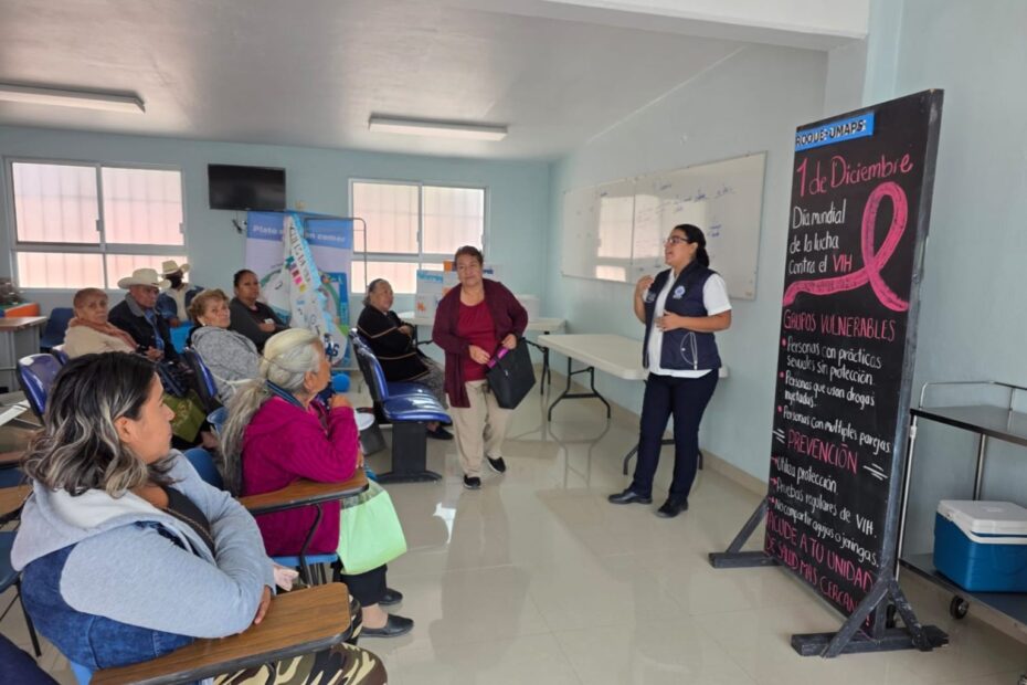 Personal de salud impartió pláticas informativas dirigidas a la comunidad, con énfasis en las formas de transmisión del VIH, las medidas de prevención y la relevancia del diagnóstico temprano. Estas acciones buscaron fortalecer el conocimiento en salud y promover el respeto a los derechos humanos de las personas que viven con esta condición.