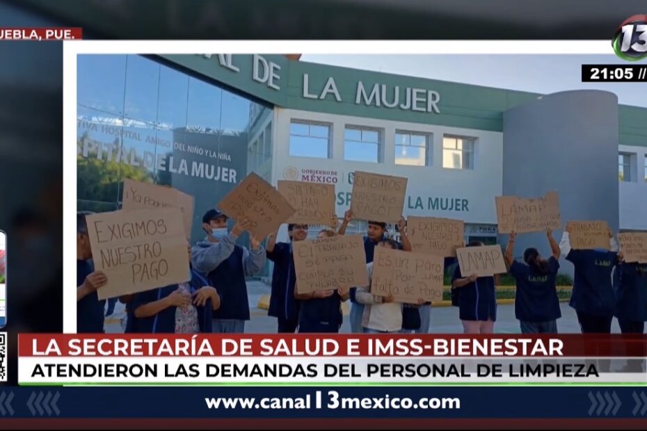 Tras la manifestación que realizaron trabajadores de la empresa LAMAP, encargada del servicio de limpieza en el Hospital de la Mujer de la ciudad de Puebla, debido a la falta de pago de hasta tres quincenas, situación que —según los empleados— ha sido constante en los últimos meses, la Secretaría de Salud y IMSS-Bienestar informaron a través de un comunicado, que dieron seguimiento al caso y, tras un acercamiento con la empresa, se acordó que los pagos se realizarían durante el transcurso de este día, por lo que mantienen supervisión para constatar que el acuerdo se cumpla.