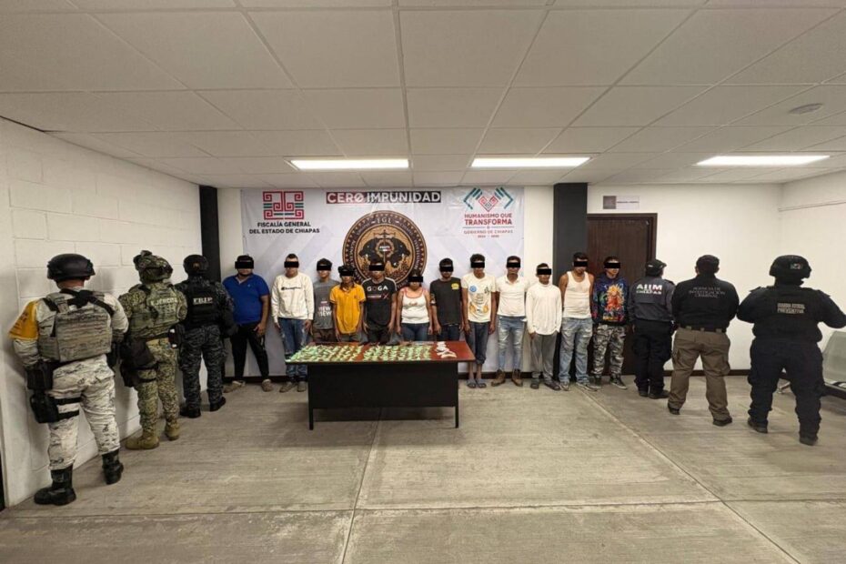 Como parte de las acciones para prevenir y combatir los delitos de alto impacto en el municipio de Cintalapa de Figueroa, la Fiscalía General del Estado, la Secretaría de la Defensa Nacional, la Fiscalía General de la República, la Guardia Nacional, el Grupo Fuerza de Reacción Inmediata Pakal y la Guardia Estatal Preventiva, lograron la detención de 12 personas, en la colonia Urbana de dicho municipio.