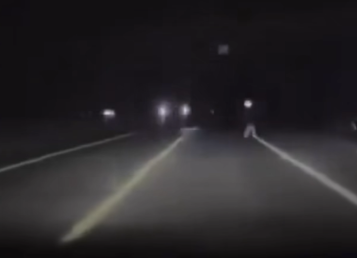 En el video, captado desde el interior de un vehículo, se observa a cinco o seis individuos con lámparas de mano. Las encienden y apagan de forma intermitente mientras se colocan en la orilla y en medio del camino. El conductor logra esquivarlos sin detener la marcha y acelera para abandonar el lugar.