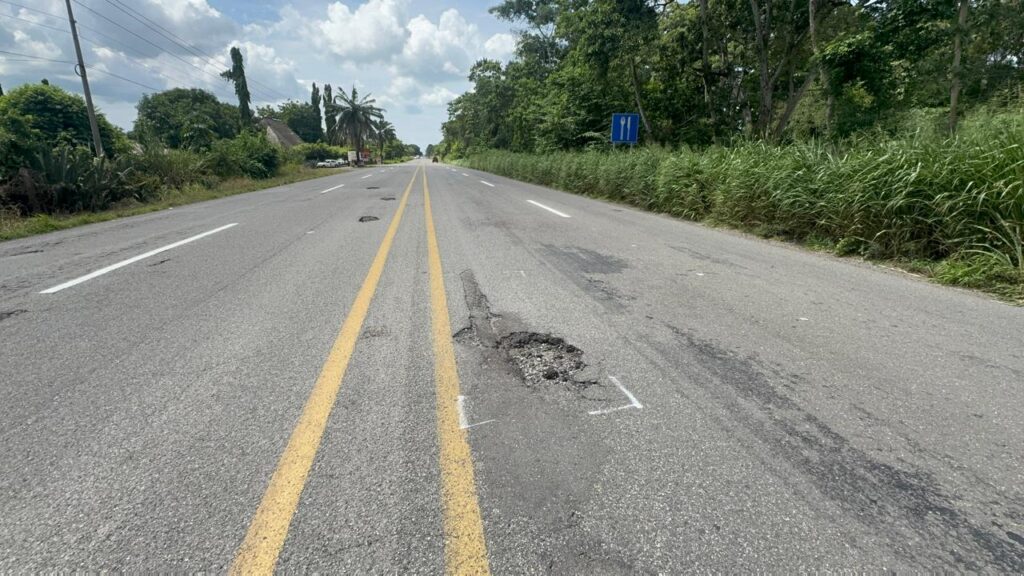 La carretera, que también es utilizada por los turistas que llegan en cruceros y por los agricultores durante la cosecha, se encuentra llena de baches y agujeros que han causado daños a los vehículos.