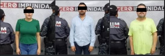 Elementos policiales de la Fiscalía General del Estado y de la Secretaría de Seguridad del Pueblo ejecutaron un mandamiento judicial en contra de Paola “N”, Marco “N” y Luis “N”, como presuntos responsables de los delitos de fraude genérico y asociación delictuosa, cometido en agravio de Julio “N”, Marisol “N”, Ivette “N” y Limberg “N” y la operadora Levita S. de R.L, por hechos ocurridos en 2018 en Tuxtla Gutiérrez.