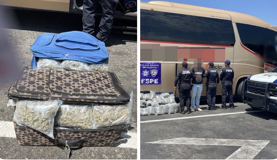 Gracias a la intervención de la Secretaría deSeguridad y Paz de Guanajuato, se logró el aseguramiento de más de 23 mil dosis de marihuana que eran transportadas en maletas dentro de un autobús de pasajeros.