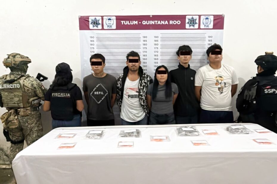 Los investigados son: Ana Dalay “N”, Mauricio de Jesús “N”, Emanuel “N” y Jesús Guillermo “N”, quienes fueron detenidos en la calle Beta Sur, entre Andrómeda Oriente y Sol Oriente, de la colonia Centro de este municipio.