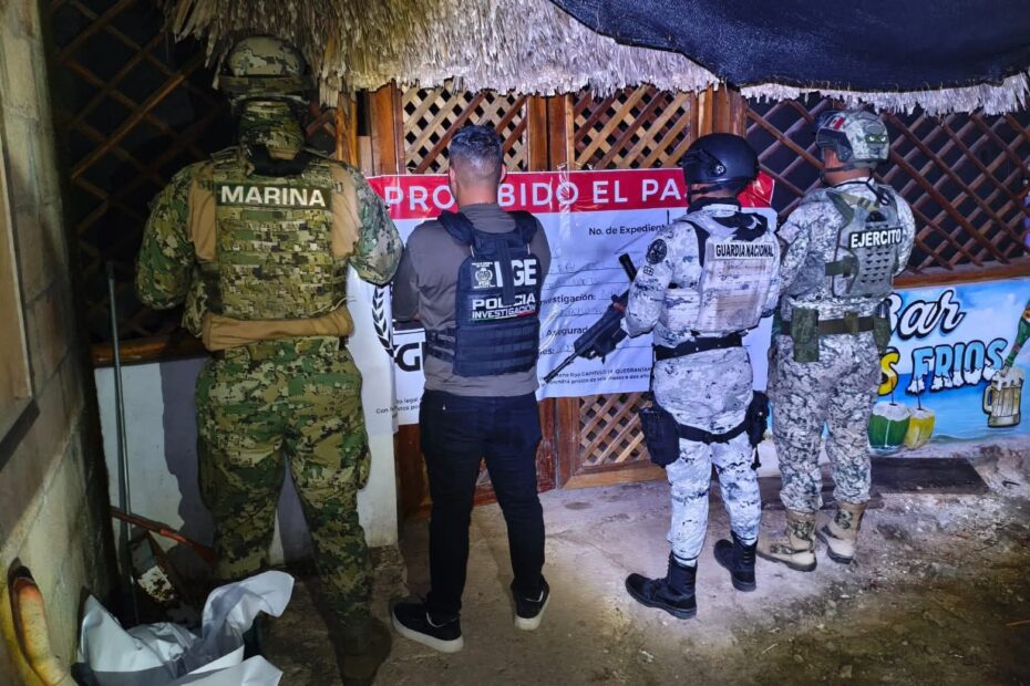 En una primera acción, en el poblado de San Ángel, en el municipio de Lázaro Cárdenas, agentes de investigación intervinieron un inmueble ubicado en la carretera Kantunilkín-Chiquilá. En el sitio se aseguraron hierba seca verde con características similares a la marihuana.