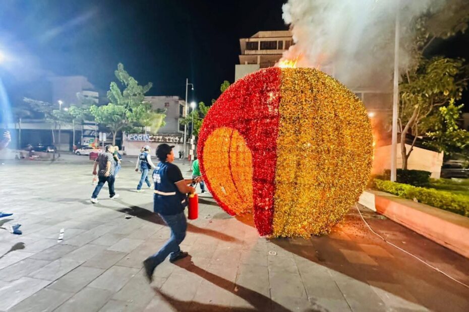 El H. Ayuntamiento de Tapachula informa que personas ajenas y con la clara intención de causar daño prendieron fuego a una parte de la decoración decembrina instalada en el Parque Miguel Hidalgo.