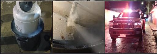 Tras recibir el reporte a través de la línea de emergencia a las 12:07 AM, la unidad de rescate y extinción COMANDO 64 se desplazó de inmediato. Al arribar al domicilio, se localizó un cilindro de 20 kg que presentaba una fuga activa en el casquete inferior (la base del tanque).