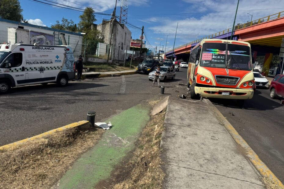 El chofer de un camión del transporte público urbano chocó contra unos bolardos de la ciclovía ubicada en el Distribuidor Vial Salida a Quiroga, al poniente de Morelia. El incidente dejó a tres menores levemente lesionados, informaron fuentes de rescate y policiales.