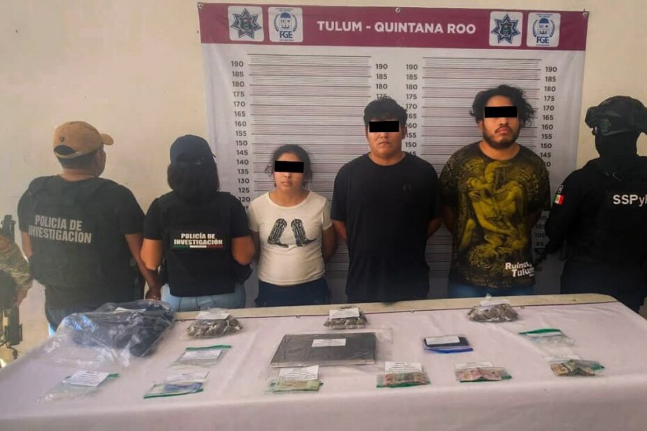 Los señalados fueron identificados como Cruz Alberto “N”, Pablo Silvino “N” y Adilene “N”, quienes, de acuerdo con las primeras investigaciones realizadas por esta Representación Social, están relacionados con una carpeta de investigación por el delito de robo con violencia, en agravio de un establecimiento comercial ubicado en la avenida Tulum, esquina con Saturno, del cual sustrajeron 40 mil pesos, una computadora portátil y un teléfono celular.