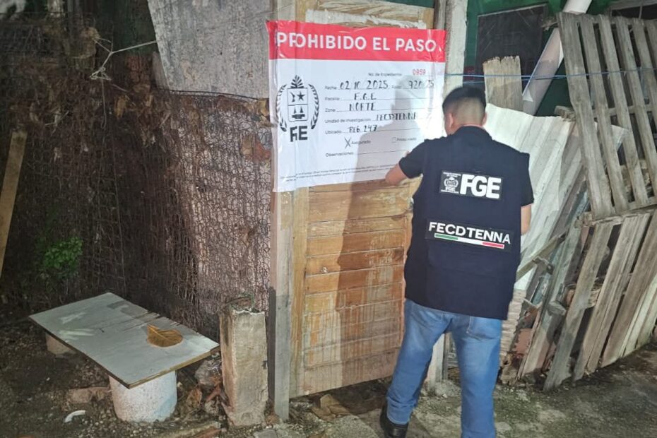 Tras labores de investigación técnicas, el ahora detenido fue ubicado en un domicilio localizado en Paseo del Arce esquina con 6ta. Privada la Higuera, de la Supermanzana 247, de este municipio, inmueble para el cual la autoridad judicial giró orden de cateo.