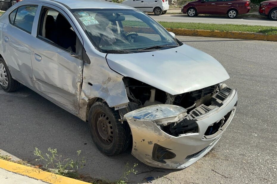Un fuerte accidente de tránsito dejó daños materiales de regular cuantía y la obstrucción parcial de la circulación en la avenida Maestros Campechanos, luego de que un automóvil compacto fuera impactado por una unidad que circulaba con preferencia, provocando que una de ellas terminara severamente dañada.