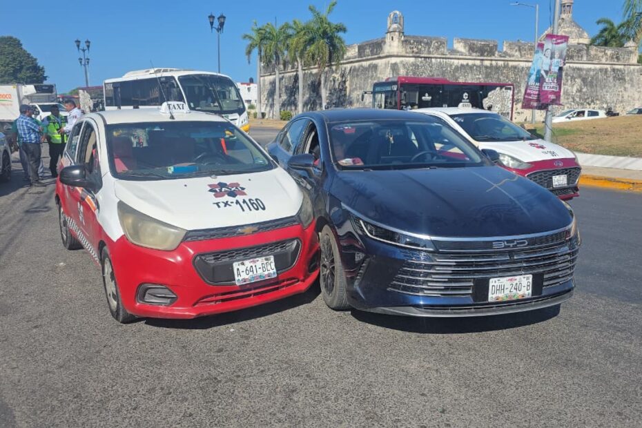 Un congestionamiento vehicular en la glorieta San Pedro derivó en un hecho de tránsito entre un taxi y un automóvil particular, lo que generó afectaciones a la circulación en la zona.