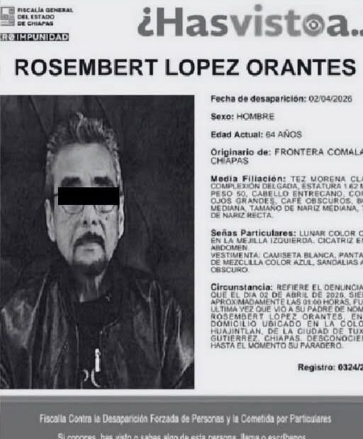 Autoridades informaron que el cuerpo localizado en la carretera Ocozocoautla–San Pedro Tapanatepec corresponde a Rosembert López Orantes, quien estaba desaparecido desde el 2 de abril de 2026.