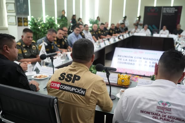 Con el objetivo de fortalecer la supervisión y las estrategias de seguridad en la entidad, el titular de la Secretaría de Seguridad del Pueblo (SSP), Óscar Alberto Aparicio Avendaño, encabezó una reunión de trabajo para seguir fortaleciendo a la institución.