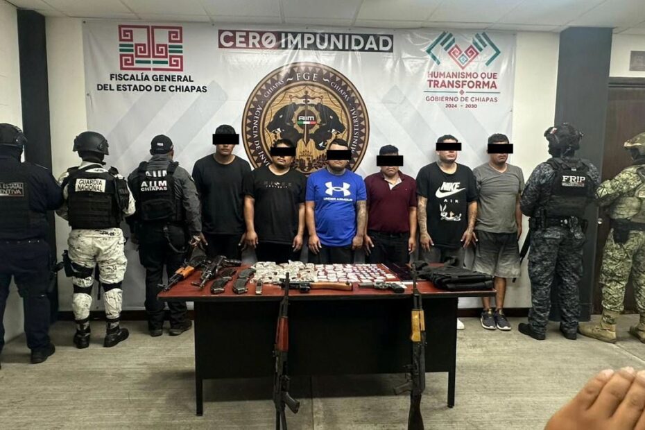 Derivado de un operativo interinstitucional encabezado por la Secretaría de Seguridad del Pueblo (SSP), a través de la Fuerza de Reacción Inmediata Pakal (FRIP) y Guardia Estatal Preventiva, en coordinación con la Agencia de Investigación e Inteligencia Ministerial (AIIM) de la Fiscalía General del Estado (FGE), Secretaría de Seguridad y Protección Ciudadana del Gobierno Federal, Ejército Mexicano, Guardia Nacional y Marina, lograron la detención de seis personas del sexo masculino por los delitos de portación de arma de fuego de uso exclusivo de las Fuerzas Armadas y contra la salud en la Carretera de Cuota Tuxtla – San Cristóbal de Las Casas, a la altura del kilómetro 43.