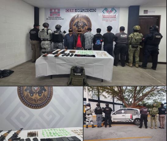 Detienen a cinco personas; asegura armas largas y narcóticos en Ixhuatán