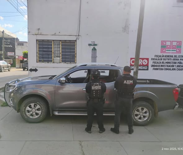 La Secretaría de Seguridad del Pueblo (SSP) a través de la Guardia Estatal Preventiva, en coordinación con la Agencia de Investigación e Inteligencia Ministerial (AIIM) de la Fiscalía General del Estado (FGE) y la Secretaría de Seguridad y Protección Ciudadana (SSPC) del Gobierno Federal, detuvieron a un masculino por conducir vehículo con reporte de robo en el tramo carretero Motozintla a Frontera Comalapa.
