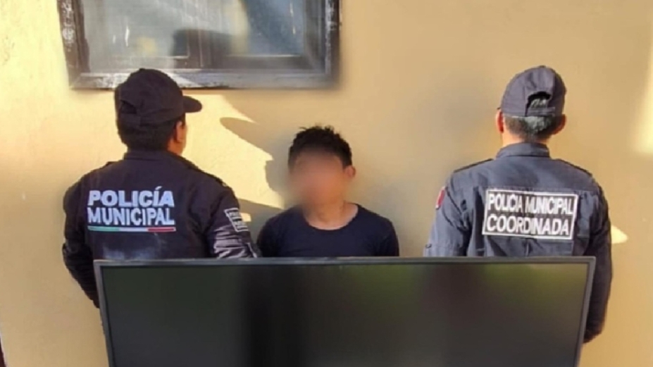 Policías municipales detuvieron a un hombre conocido como “El Polichito” después de que presuntamente robó un televisor de pantalla plana de 43 pulgadas de un inmueble que, según vecinos, opera como un clandestino en el camino hacia la unidad Venancio.