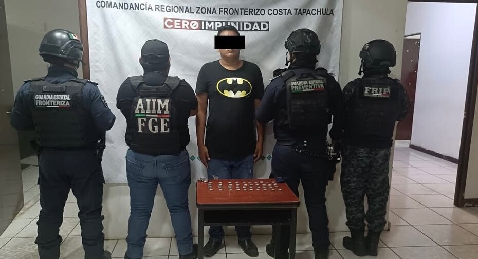 La Secretaría de Seguridad del Pueblo (SSP) a través de la Fuerza de Reacción Inmediata Pakal (FRIP), la Guardia Estatal Preventiva y la Guardia Estatal Fronteriza, en coordinación con la Agencia de Investigación e Inteligencia Ministerial (AIIM) de la Fiscalía General del Estado (FGE) y la Secretaría de Seguridad y Protección Ciudadana (SSPC) del Gobierno Federal, lograron la detención de una persona con presuntos narcóticos, en el municipio de Tapachula.