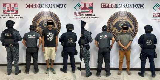 La Fiscalía General del Estado y la Secretaría de Seguridad del Pueblo ejecutaron dos órdenes de aprehensión en contra de Edilberto “N”, alias Negro”, y de Saimón “N”, como presuntos responsables del delito de robo con violencia de vehículo de motor terrestre, cometido en agravio de Édgar “N”, por hechos ocurridos en la colonia Capulines II de Tuxtla Gutiérrez, el 26 de febrero de 2026.