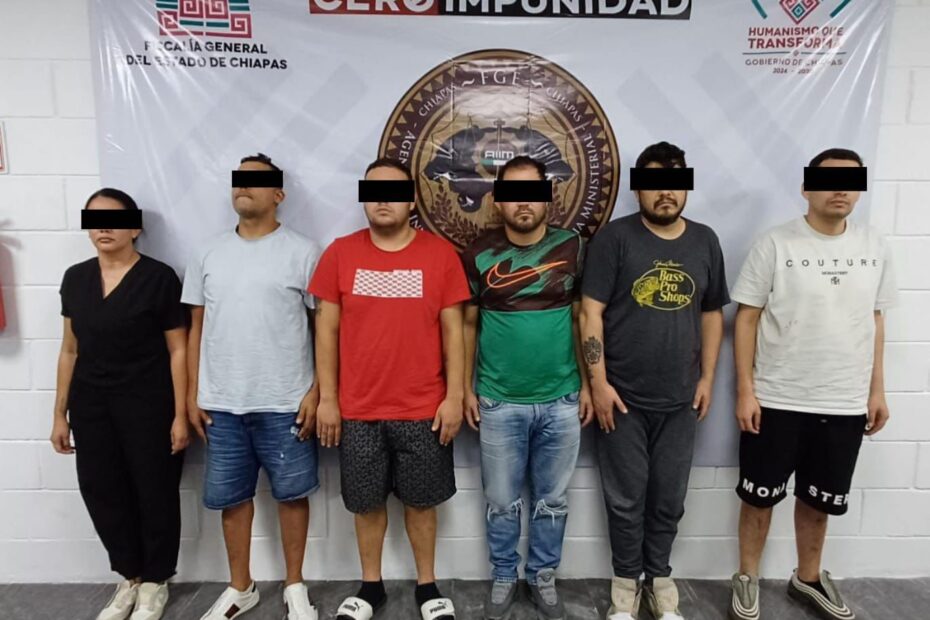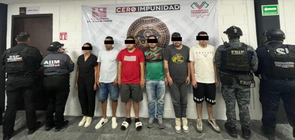 La Fiscalía General del Estado de Chiapas en colaboración con la Fiscalía General del Estado de Quintana Roo y la Secretaría de Seguridad del Pueblo, aprehendieron a Juan “N”, Marco “N”, Daniel “N”, José “N”, María “N” y Kenny “N”, por el delito de robo con violencia agravado en perjuicio de una persona de sexo masculino de identidad resguardada, el 30 de enero de 2026, en dicho fraccionamiento de la capital chiapaneca.