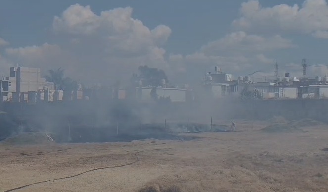 Se registró un incendio de pastizal en inmediaciones de la colonia Ex Hacienda Mayorazgo, en Puebla, cerca de la nueva Casa del Abue.