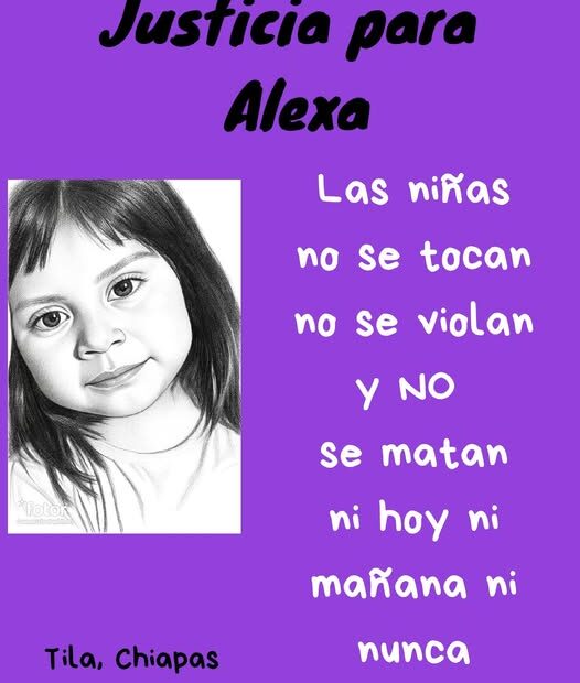 Los hechos se habrían registrado el pasado 22 de febrero, en la comunidad indígena Chol, Taquinam, al norte del estado de Chiapas, cuando menor de tan solo 3 años de edad de nombre Alexa, fue reportada como desaparecida, la pequeña de cabello corto y ojos avellana, vestida en el momento de sud desaparición una blusa negra y un pants de color negro.