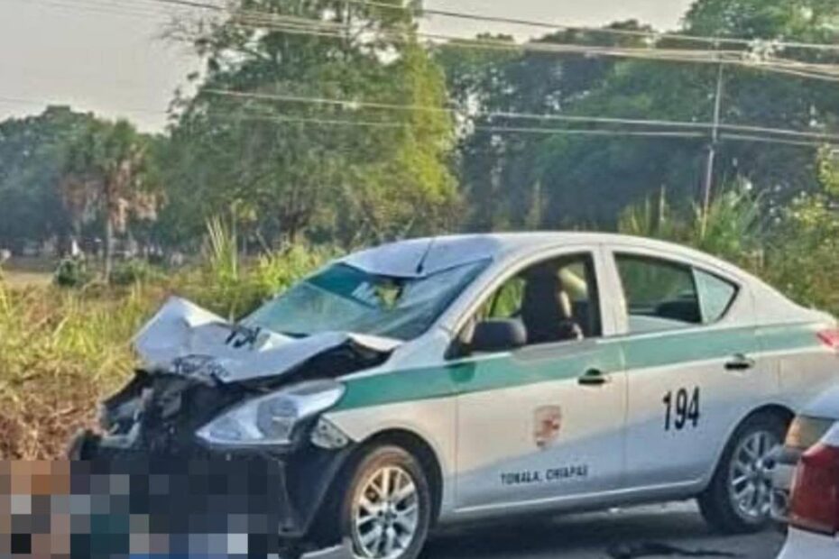 La tarde de este lunes se registró un fuerte accidente vial sobre el tramo carretero Tonalá–Puerto Arista, a la altura del puente Capulín, cerca de una gasolinera, donde una motocicleta y un taxi se vieron involucrados en un choque.