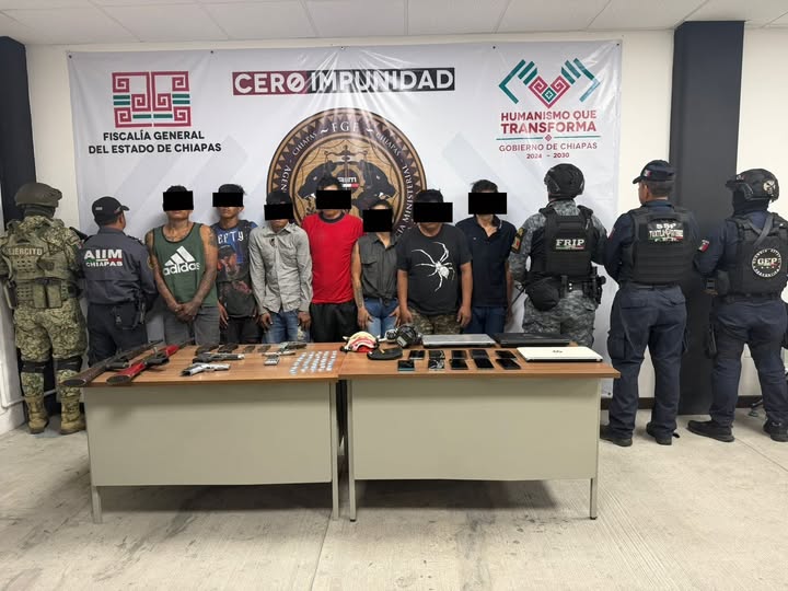 La Fiscalía General del Estado obtuvo la vinculación a proceso en contra de David “N”, José “N”, Isabel “N”, José A. “N”, Oswaldo “N”, Luis “N” y Luisa “N”, como presuntos responsables de los delitos contra la salud, en su modalidad de narcomenudeo con la variante de posesión con fines de comercio de metanfetamina, y ocultamiento de vehículos robados, por hechos ocurridos el 29 de marzo de 2026, en la colonia Kilómetro 4 de Tuxtla Gutiérrez.