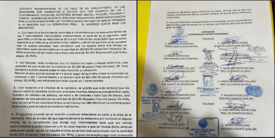 Autoridades tradicionales tuvieron a bien extienden un documento, en el cual plasmaron con puño y letra las medidas que se tomarán para los automovilistas y motociclistas que circulan en las carreteras de la región,