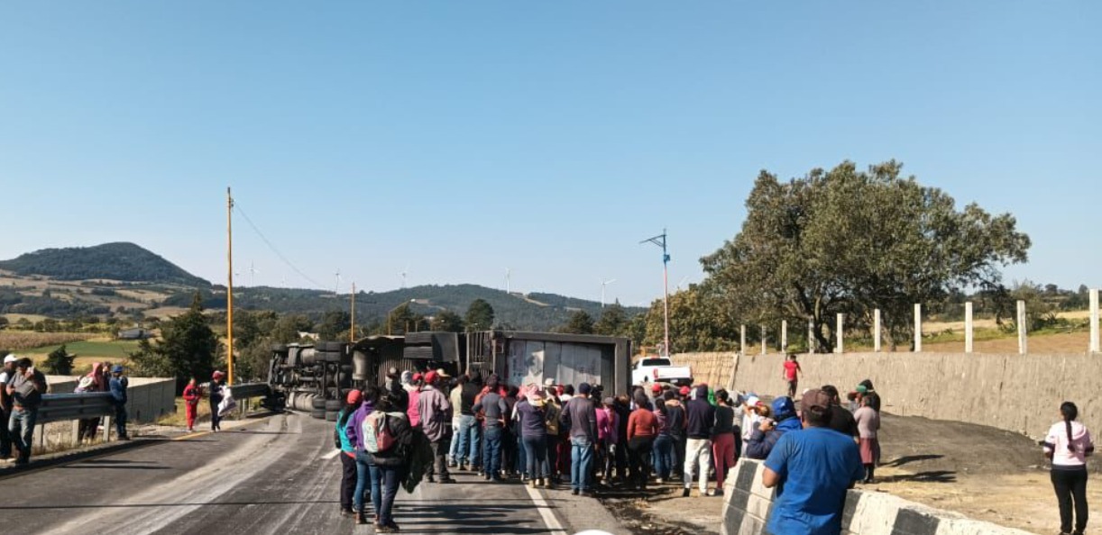 Un tráiler cargado con pavos congelados terminó rapiñado, luego de sufrir un accidente vial, sobre el kilómetro 221 de la autopista Puebla-Orizaba, a la altura de la congregación de San José Cuyachapa en el municipio de Esperanza, Puebla, entre los límites con Veracruz.