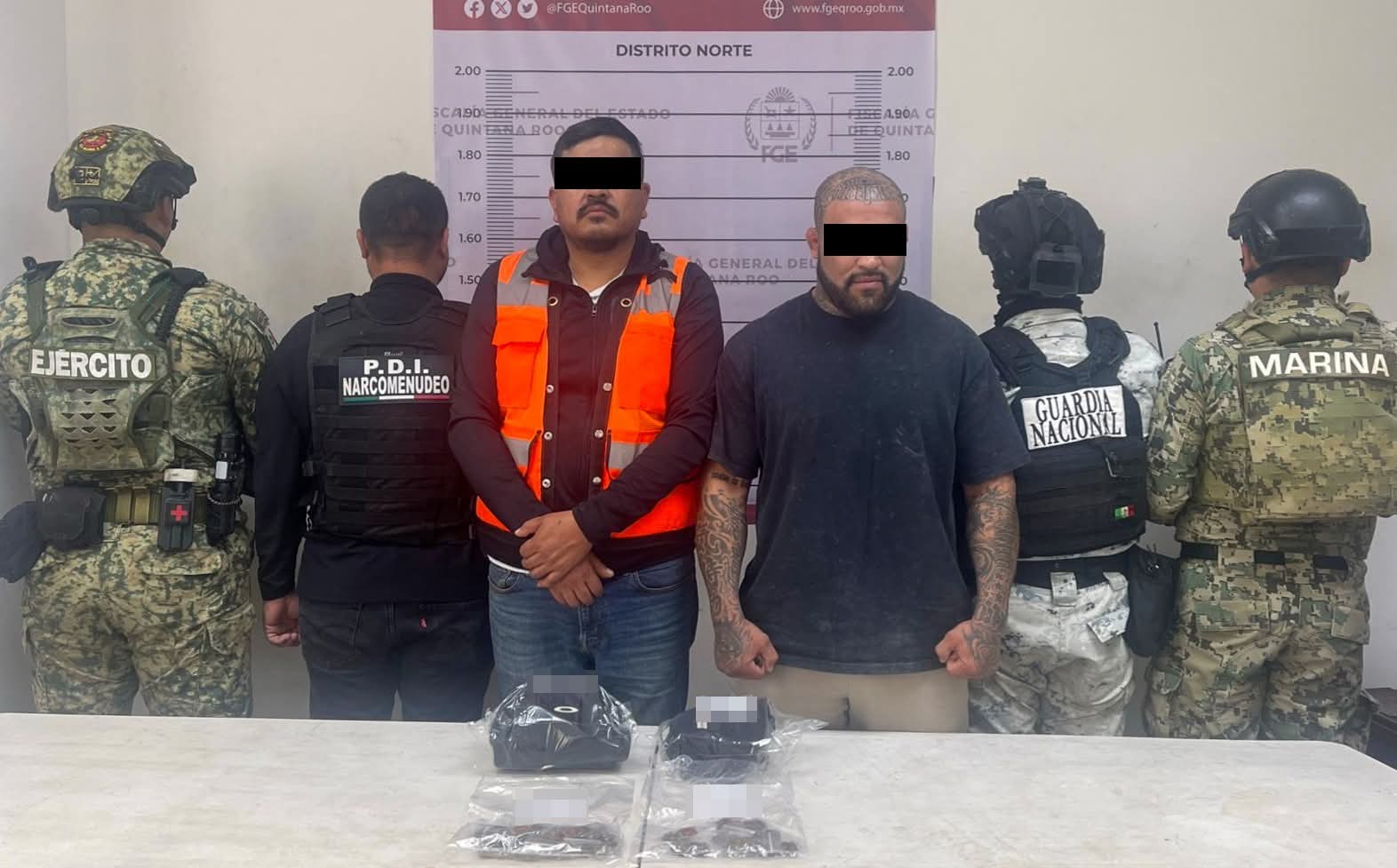 Asimismo, en un inmueble ubicado en la calle Aarón Merino Fernández, esquina con avenida Independencia, de la localidad de Xul Há, municipio de Othón P. Blanco, los agentes encontraron hierba verde y seca, así como sustancia sólida similar a la cocaína. A pocos metros del lugar detuvieron a Samuel “N” y Óscar Amílcar “N”, en posesión de presuntos narcóticos.