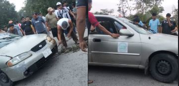 Al lugar se constituyeron decenas de particulares, que ayudaron a los menores de edad y se organizaron para poner de pie el automovil que había quedado con los neumáticos para arriba, donde aplicaron la unión hace la fuerza y finalmente lo extrajeron, para regresarlo a la cinta asfáltica.