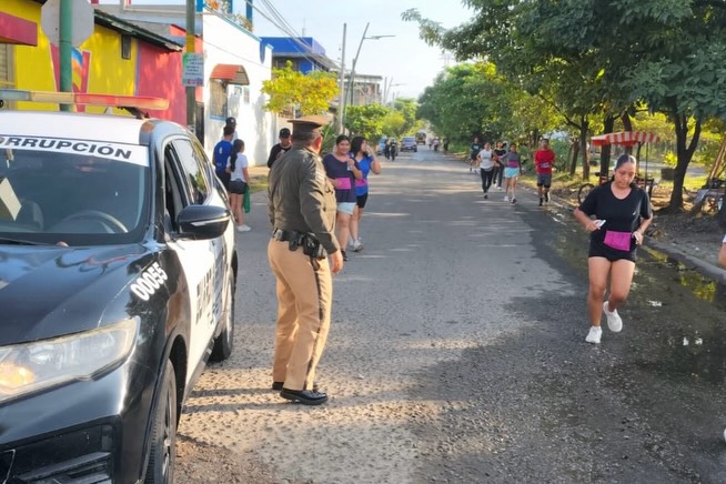 Durante esta actividad deportiva y recreativa, personal de la Guardia de Turismo mantuvo presencia puntual y oportuna para aplicar cortes y desvíos a la circulación a la altura del Libramiento Sur, a la altura de Tienda Amiga de esa ciudad y con ello prevenir cualquier tipo de accidentes.
