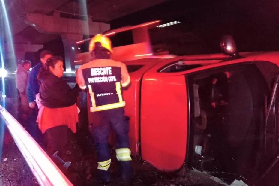 La volcadura de un vehículo se registró sobre la autopista México–Puebla, a la altura de San Felipe Hueyotlipan.