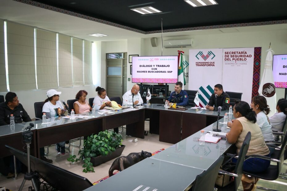 El secretario de Seguridad del Pueblo, Óscar Alberto Aparicio Avendaño, acompañado del subsecretario de Seguridad del Pueblo, Álvaro Serrano Escobedo, sostuvieron un diálogo con integrantes del colectivo Madres Buscadoras de los Altos de Chiapas, con el propósito de fortalecer las acciones institucionales para la localización de sus familiares desaparecidos.