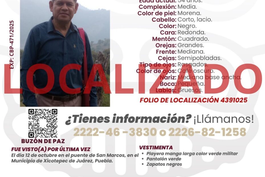 La cifra de personas fallecidas por las lluvias en las sierras de Puebla aumentó a 21. Personal de la Comisión de Búsqueda de Personas del Estado de Puebla localizó sin vida a Ernesto Islas Aparicio, de 54 años de edad, en el río San Marcos, a la altura de la comunidad de Hula, perteneciente al municipio de Tlacuilotepec.