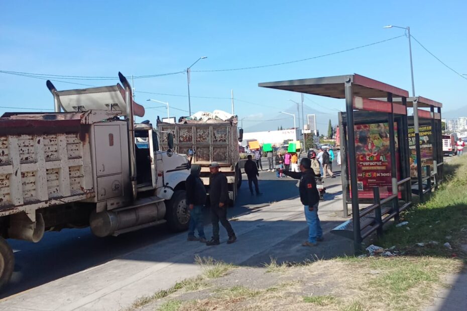 Miembros de la Unión de Sindicatos de Transportistas del Estado de Puebla, con apoyo de camiones pesados, bloquearon la circulación sobre el Periférico Ecológico a la altura de Periplaza, lo que paralizó por completo el tránsito vehicular y afectó a cientos de automovilistas.