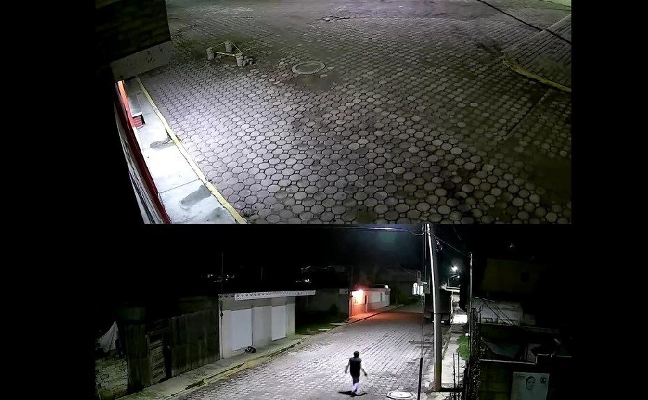El hecho quedó captado en cámaras de seguridad, donde se observa al hombre caminar con una botella en la mano mientras ahuyenta a perros callejeros para evitar ser mordido. Sin embargo, durante su trayecto, nota un cobertor tendido afuera de una casa y sin dudarlo, lo toma y continúa su camino.