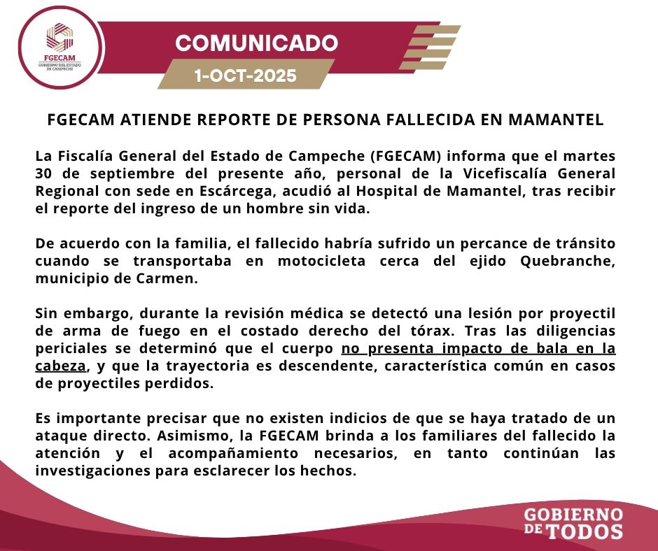 October 2, 2025Jose ColoradoCampeche,Noticias#muere,bala perdida,CARMENAl darse a conocer la muerte de una persona en...