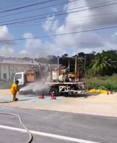 Se quema motor de camión en Escárcega