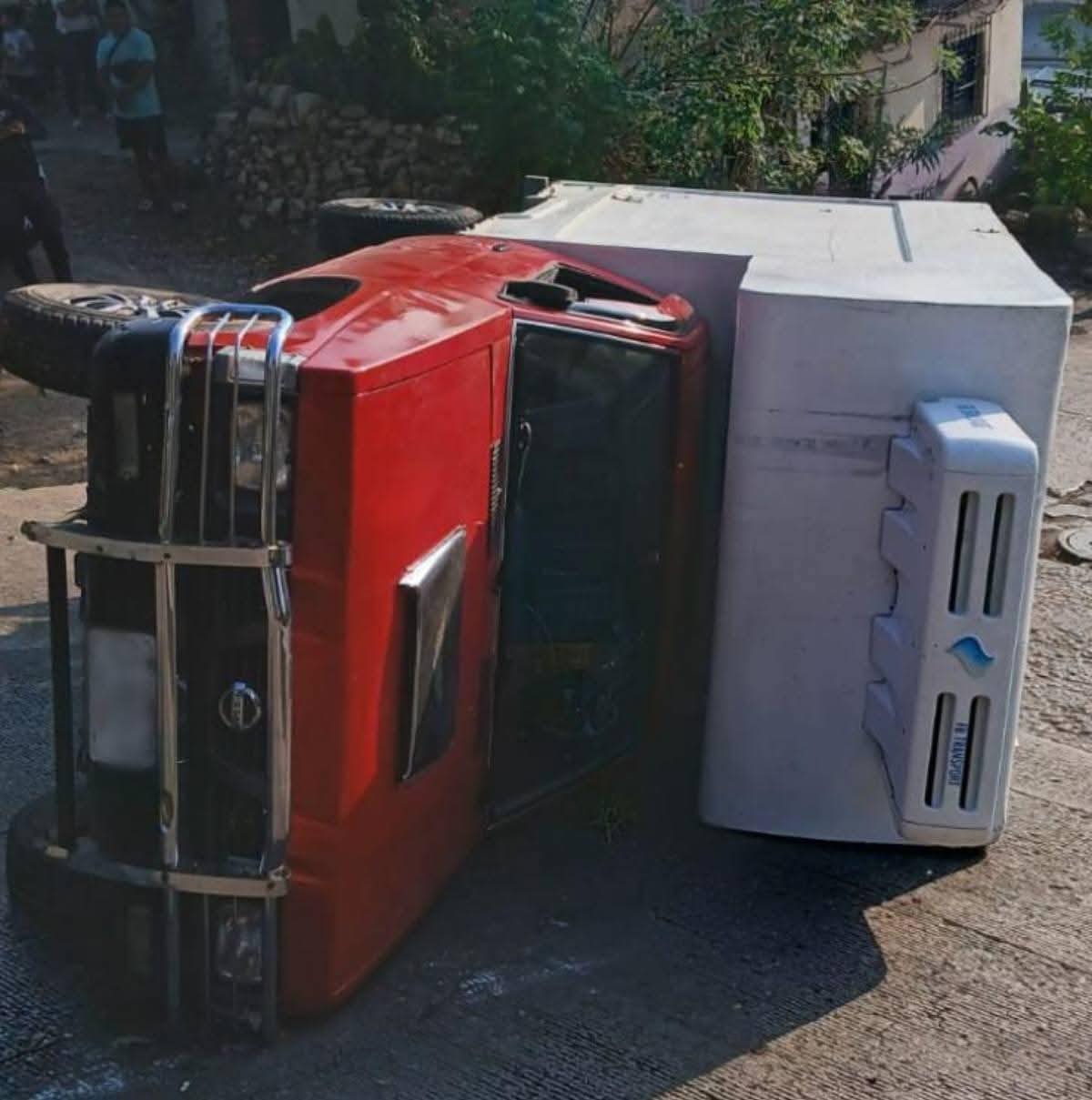 Camioneta vuelca en la famosa rampa de