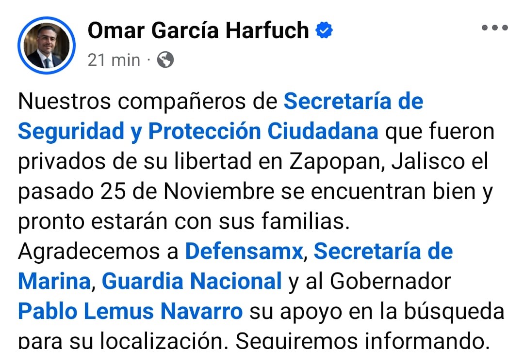December 2, 2025Mariana QuirarteGuadalajara,Noticias#agentes,#FEDERALES,#LemusEl gobernador de Jalisco, Pablo Lemus confirmó la localización con...