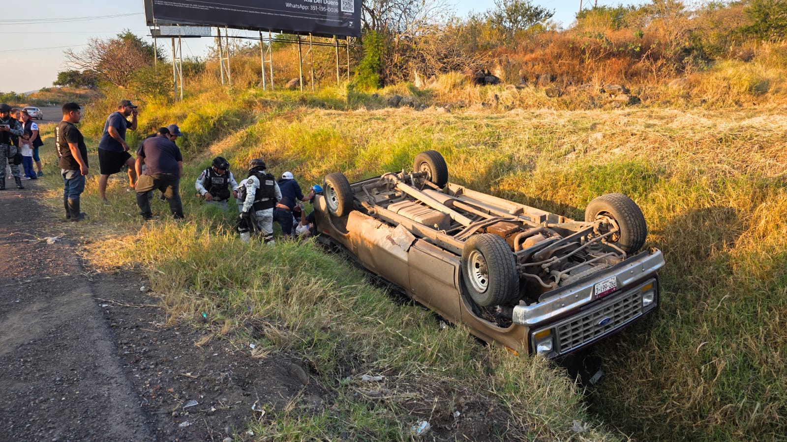 Mujer y niña heridas tras aparatosa volcadura