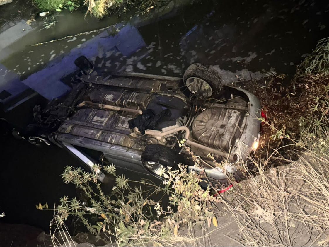 Automovilista cae a canal de aguas negras