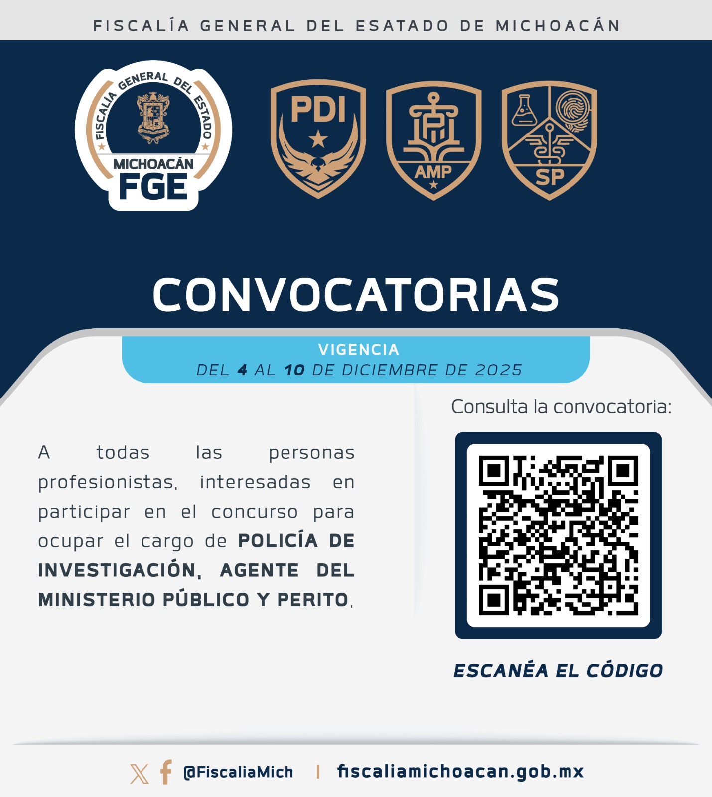 December 5, 2025Oscar GarzaMichoacán,Noticias#emite,#FGE,ConvocatoriasCon el propósito de fortalecer las capacidades operativas y técnicas...