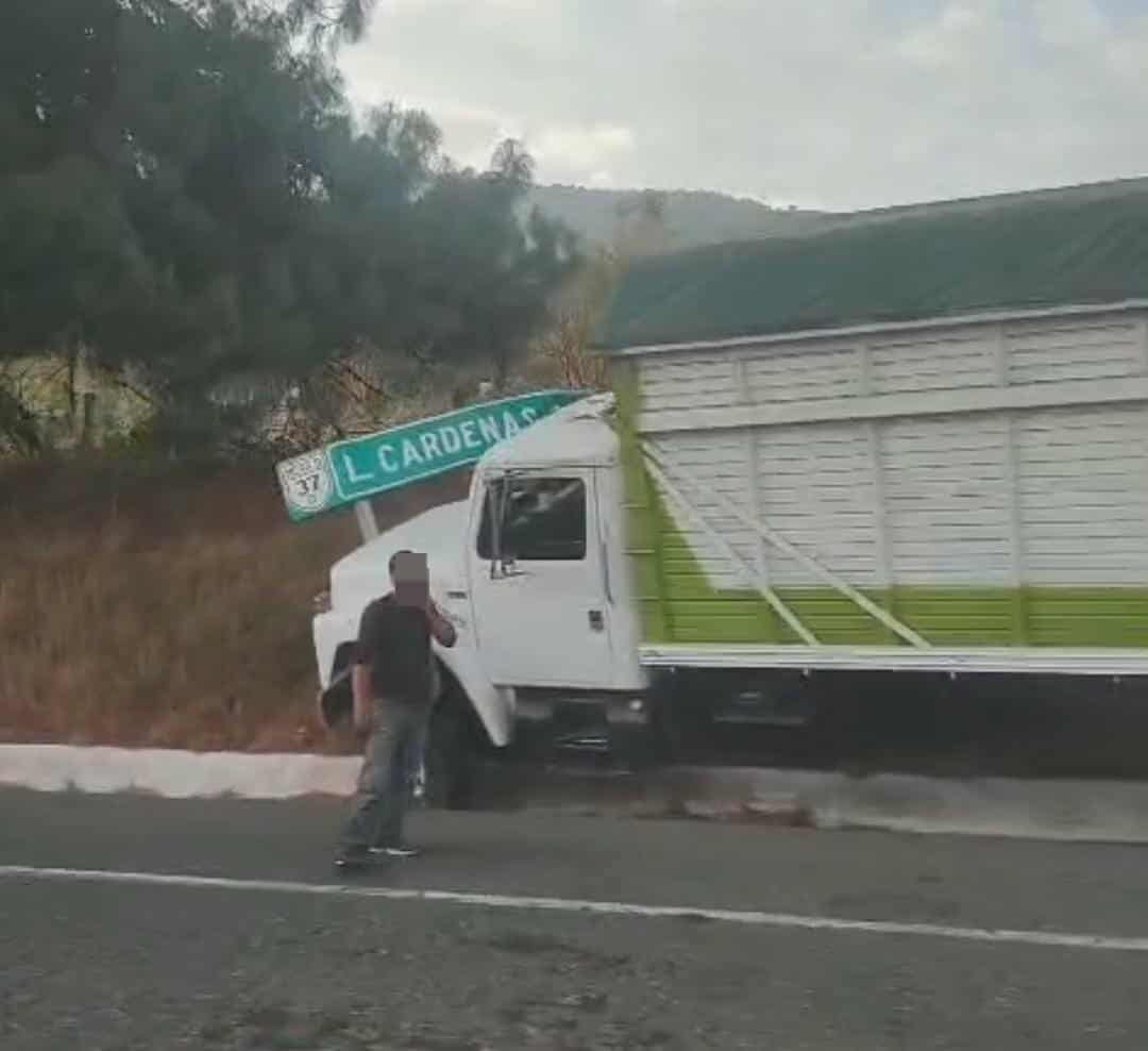 December 5, 2025Oscar GarzaMichoacán,Noticias#accidenta,#autopista,#camiónn camión tipo torton se estrelló contra un letrero metálico...