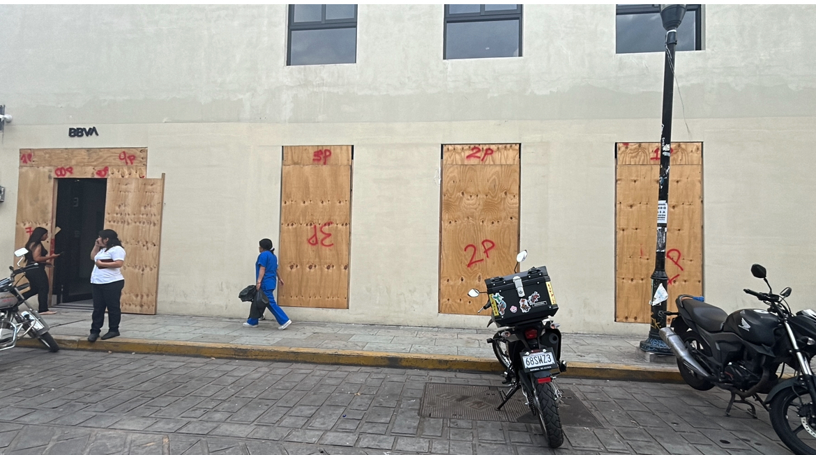 Comercios y bancos colocan protecciones en puertas