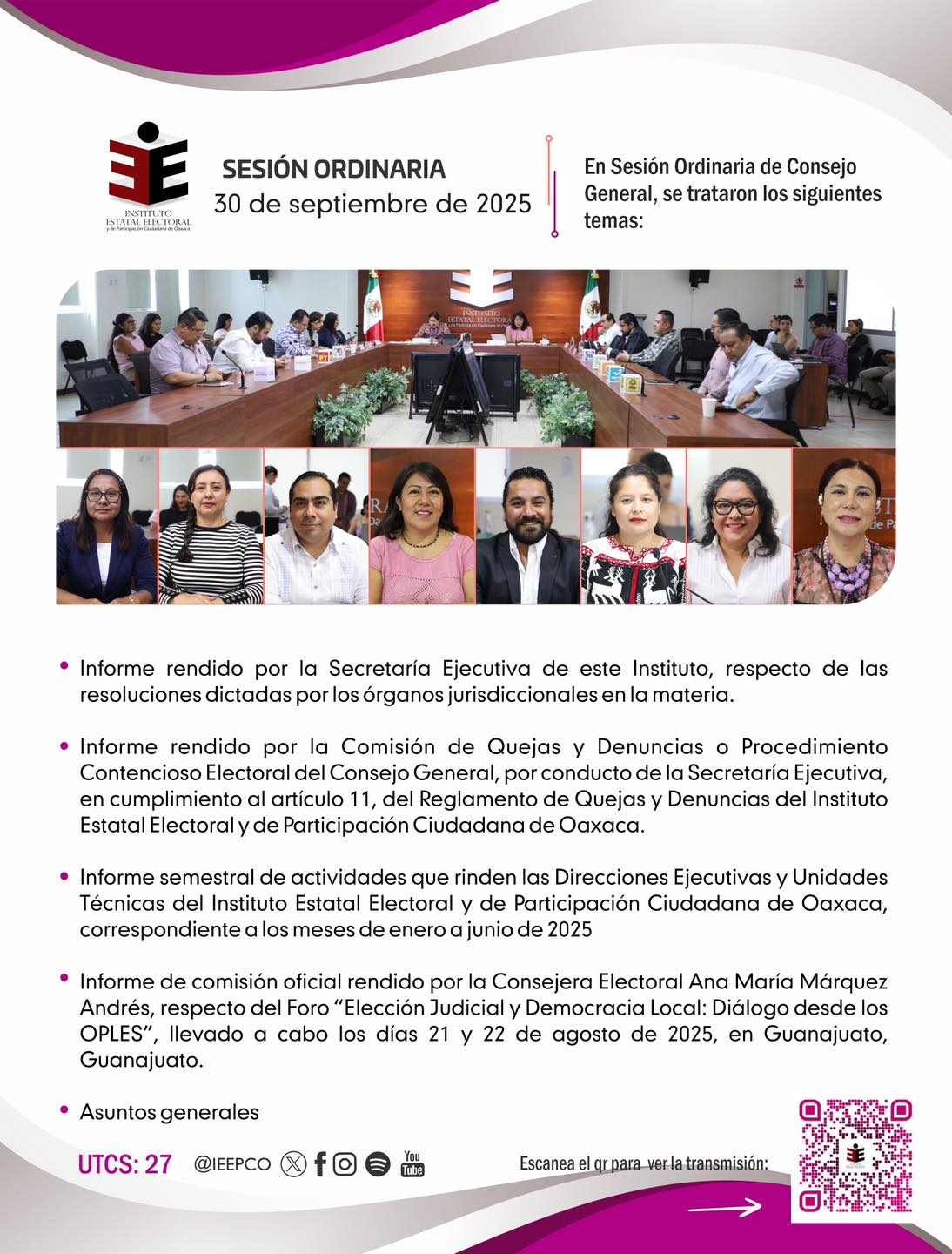 October 1, 2025Juan MorgaOaxacaIEEPCOEl Consejo General del Instituto Estatal Electoral y de Participación...